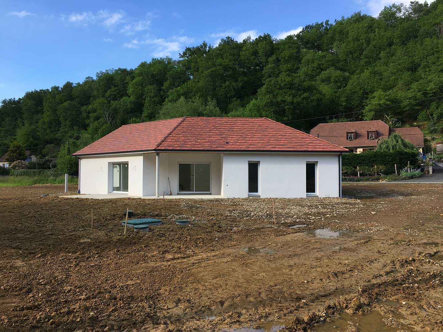 Petite villa en V avec garage fermé